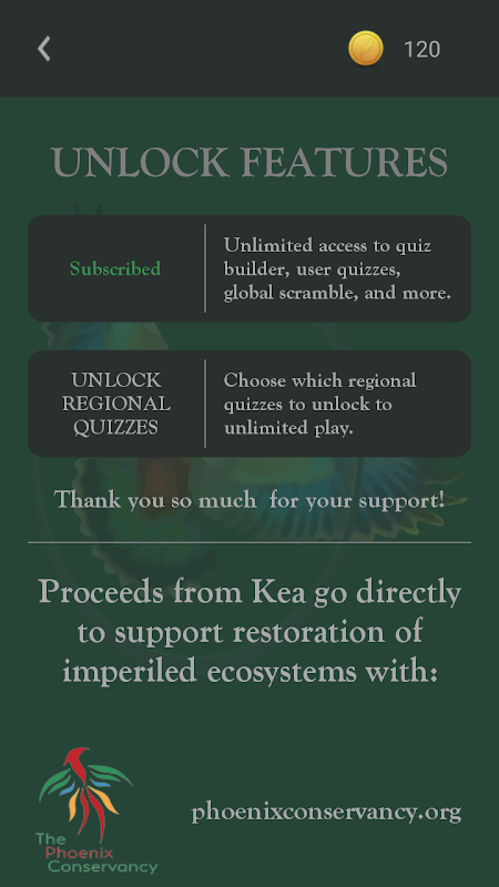Kea is an ongoing project with a mission to take the monotony out of learning new birds. New birds and locations are being added all the time, and exciting new features are always just around the corner. Kea can take your birding to the next level, whether you're just getting started in birding or a seasoned veteran looking to sharpen your skills on birds from around the globe. Best of all, Kea is dedicated to conservation and restoration of the world's ecosystems and wildlife.