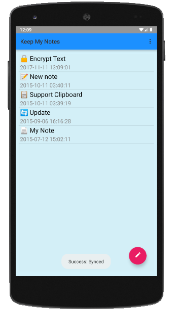 * Pulsación larga en el botón de la pluma para sincronizar notas con el servidor