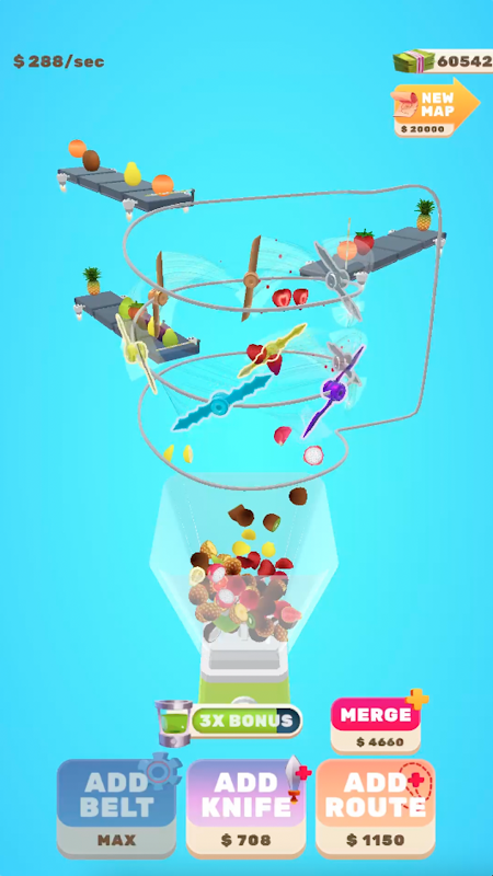 Combina tus cuchillas para obtener mejores cuchillas. ¡Llena tu batidora y corta todas las frutas!