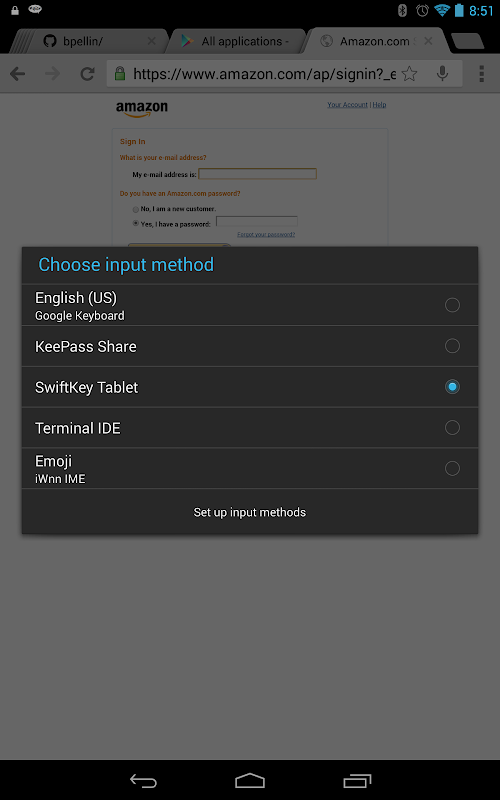 Step 1) Run through the setup. Enable Google Drive integration and the "Custom Keyboard" by toggling the on/off switch and choosing "KeepShare" on the next screen. Enter all necessary information to unlock your database.