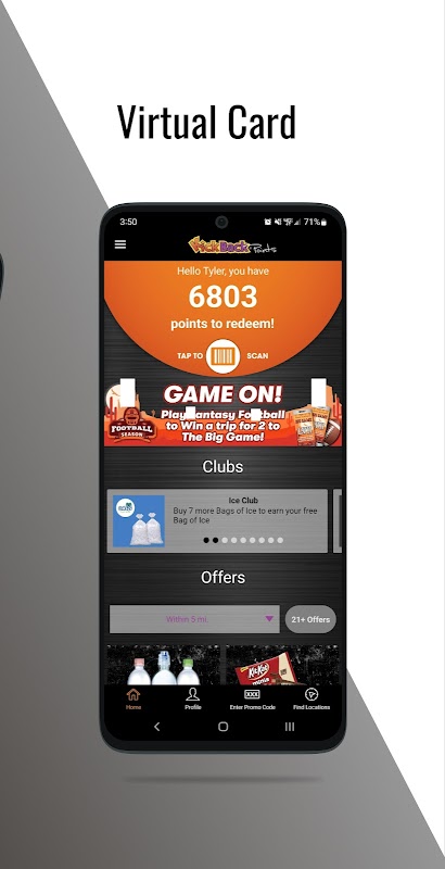 ¡Manténgase al tanto de sus KickBack Points con la aplicación KickBack Points! Esta aplicación dinámica para teléfonos y tabletas realiza un seguimiento de sus transacciones, así como de la cantidad de puntos KickBack ganados cada vez que realiza una compra en un comerciante participante. Además, el práctico localizador de KB le permite encontrar comerciantes de KickBack participantes en todo el país, junto con información para cada ubicación de KickBack.
