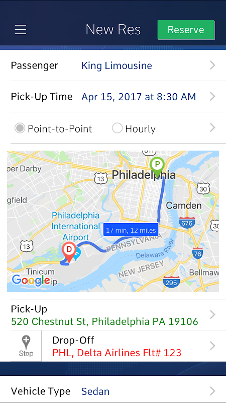 Aplicación cliente para King Limousine & Transportation Service, Inc.