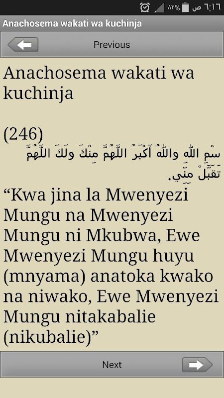 Ninamuomba Mwenyezi Mungu kwa majina Yake mazuri, na sifa Zake zilizo juu, Ajaaliye kazi hii kuwa, imesafika lengo lake, kwa kutaka radhi zake Mwenyezi Mungu Mtukufu, na Aninufaishe kwa hayo katika uhai wangu huu, na baada ya kufa, na Amnufaishe atakayekisoma, kukichapisha, au aliyekuwa ni sababu ya kukitawanya, hakika Yeye Mwenyezi Mungu Ndiye Muweza.
