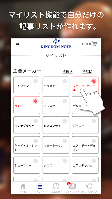 KINGDOM NOTEは、万年筆・筆記具に関する最新記事を、あなたの好みに合わせてお届け。ポイントカード機能、最新情報通知など、お買い物に役立つ機能も充実!