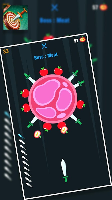 La dificultad aumenta lentamente con los nuevos niveles. evite golpear cuchillos y púas previamente golpeados. en niveles avanzados golpea todas las manzanas que giran en los bordes del tablero de registro.