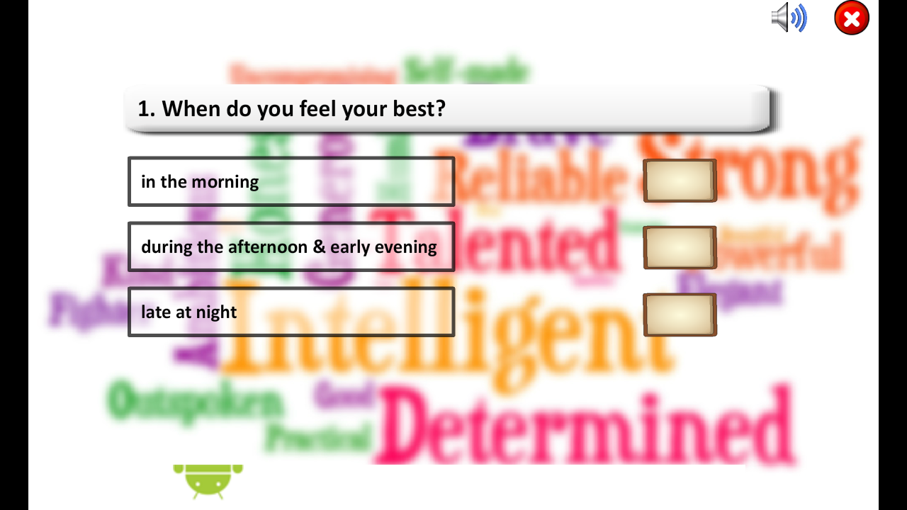 Conozca a ti mismo a través de su prioridades, el significado y la gente que te rodea. Ver desde una perspectiva diferente de lo que eres y lo que usted aspira a ser a través de nuestra aplicación maravilloso. Diferentes tipos de cuestionarios para sacudir su mente y conocer a usted. La personalidad es un gran rasgo de lo que aspiramos a desarrollar, aunque su vida. Descubre dónde se encuentra y qué decir de sus decisiones. Una autoevaluación de sí mismo de los ojos del mundo.