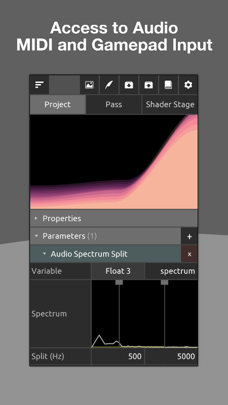 Utilice la entrada de audio de su dispositivo y todas las conexiones MIDI disponibles o conecte un gamepad para controlar sus imágenes. Soporte para teclados, ratones y trackpads externos.