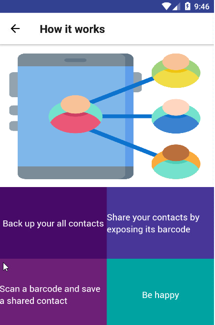 Have access to all your contacts from any mobile device with ease. Share contacts with friends and families by simply scanning a code.
