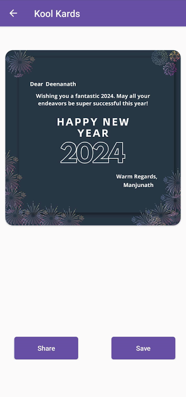 En esencia, la aplicación ofrece una interfaz perfecta donde los usuarios pueden elegir entre una amplia gama de ocasiones, desde cumpleaños y aniversarios hasta días festivos e hitos especiales. Pero lo que distingue a esta aplicación son sus incomparables funciones de personalización. Los usuarios pueden integrar sin esfuerzo elementos personalizados como el nombre del destinatario, el nombre del remitente e imágenes relevantes, creando una obra maestra única que resuena con autenticidad y emoción.