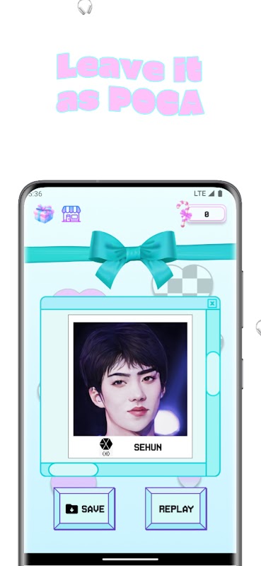La foto dibujada por IA de Kpop Idol obtenida con la respuesta correcta se guarda en una tarjeta de fotos.