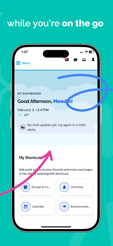 Este portal de fácil acceso se adapta al estilo de vida activo de los residentes, ayudándolos a mantenerse conectados con su comunidad en cualquier momento, de día o de noche.