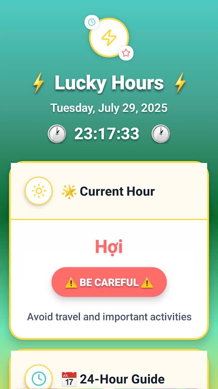 Además de mostrar fechas lunares detalladas, la aplicación también proporciona información sobre horas propicias, buenas y malas, y qué hacer y qué evitar durante el día para que puedas organizar tu trabajo fácilmente y tomar decisiones adecuadas para ocasiones importantes.