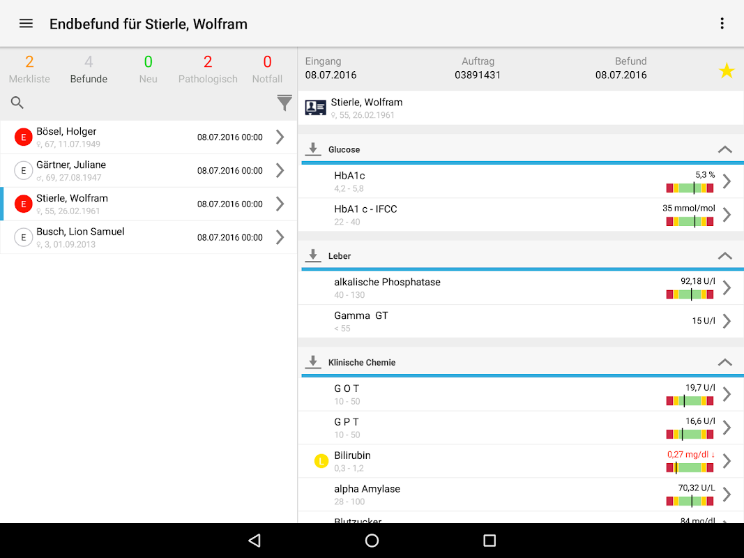• Hochpathologische Filter für Befundliste