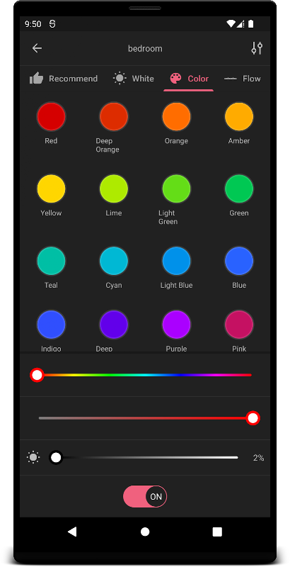 Con él, puede controlar el encendido / apagado, el brillo, el color, la saturación y la temperatura del color.