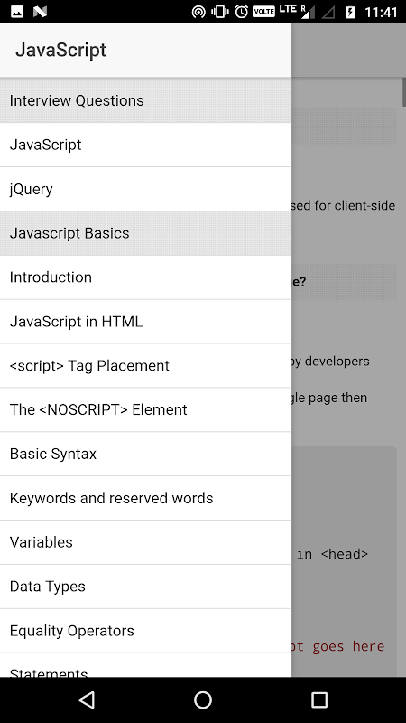 Application contains JavaScript basic, Javascript tutorial and interview questions, JS Beginners.