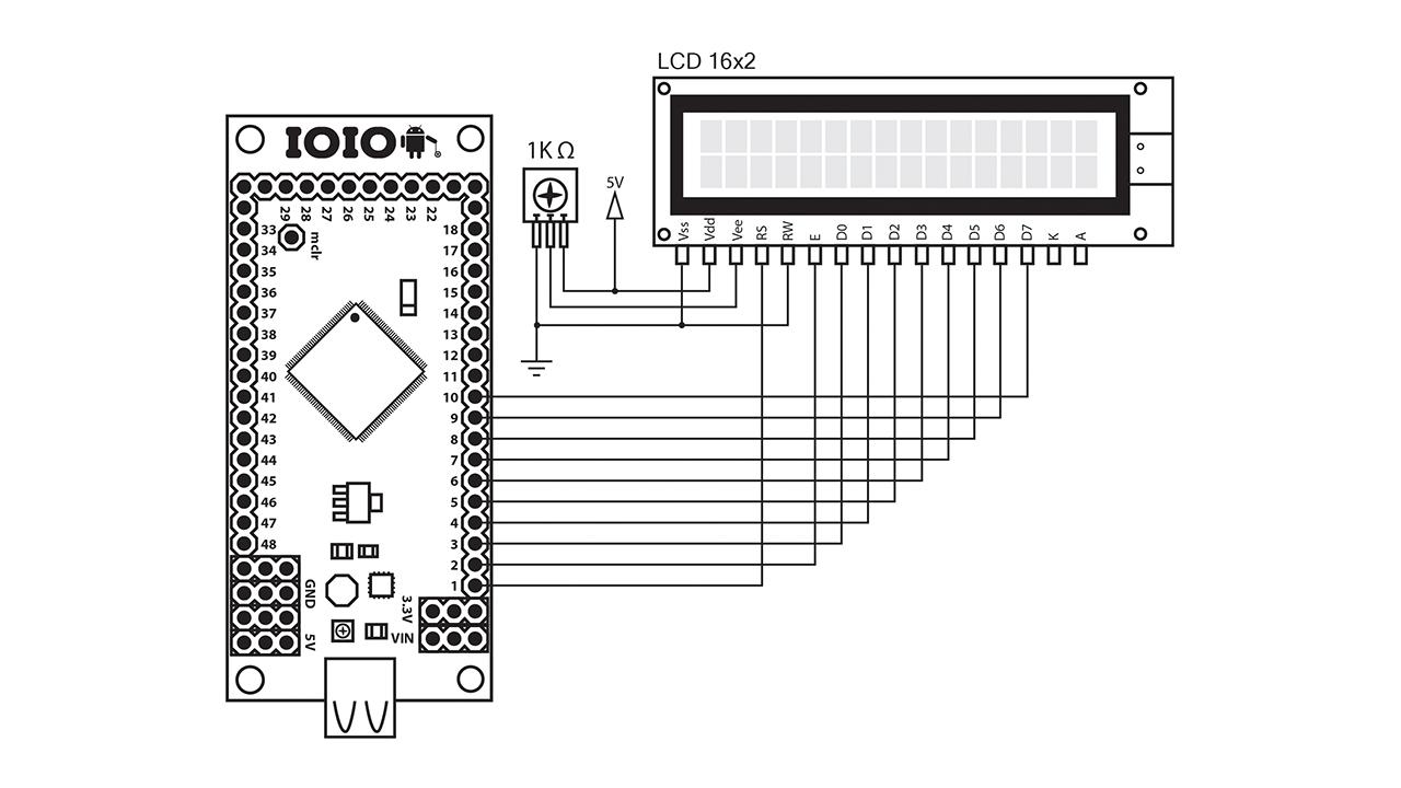 Conecte IOIO o junta IOIO-Q con 16x2 LCD