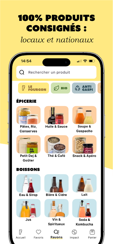 En Le Fourgon, puedes pedir una amplia gama de productos de uso diario, todos en envases reutilizables. Te los llevamos a casa gratis y recogemos tus envases vacíos. Estos se lavan y se rellenan para darles una segunda vida, como en la época de nuestros abuelos.