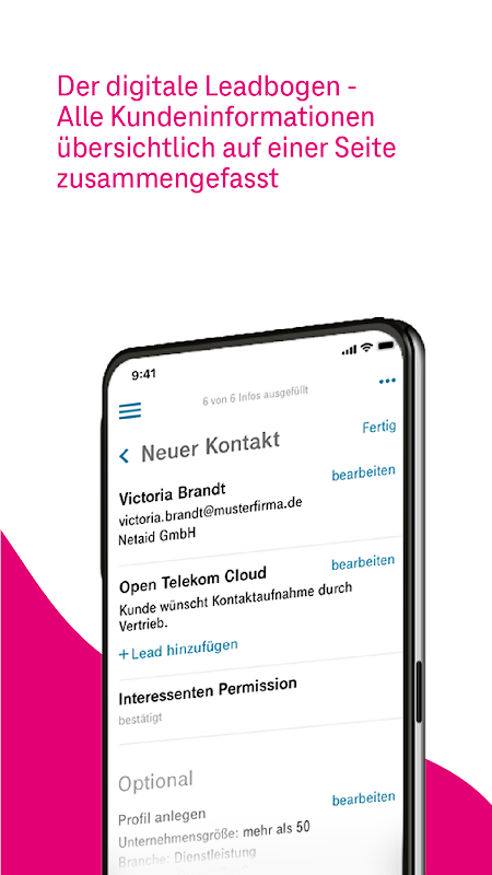 Die Anwendung richtet sich an Berater der Telekom und von T-Systems sowie an Partner der Telekom. Mit Hilfe einer App-unterstützten Checkliste werden Kundengespräche automatisch um den jeweiligen Beratungskontext ergänzt und können reibungslos in CRM-Systeme integriert werden.