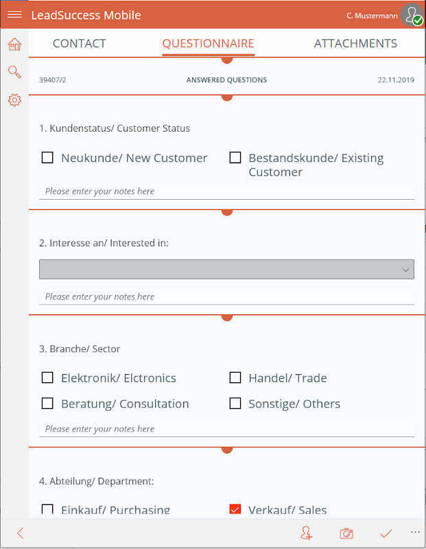 - le permite definir sus clientes potenciales aún más a través del cuestionario digital, los campos de comentarios y la aplicación de boceto integrada