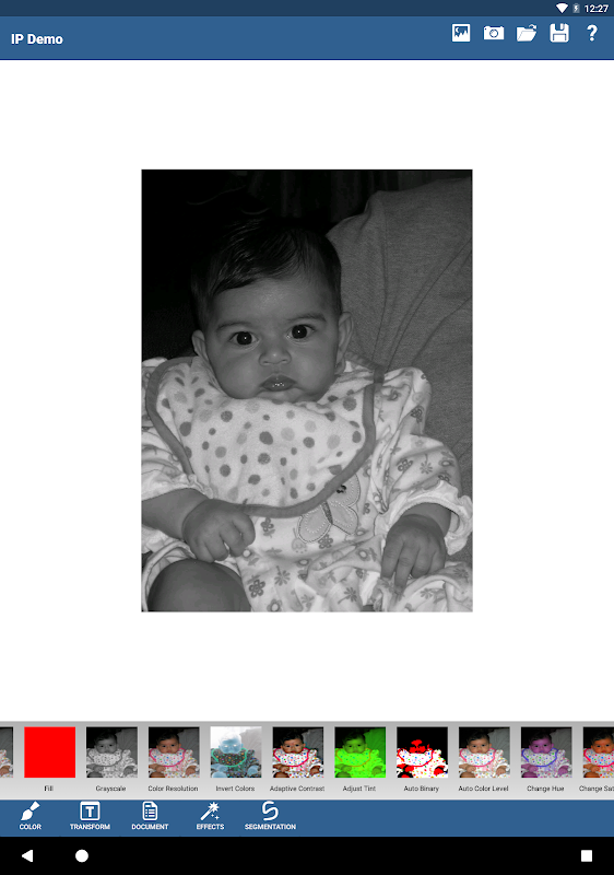 APP FOR DEVELOPERS – see note below. The LEADTOOLS Image Processing application for Android allows you to apply effects to images loaded from your computer.