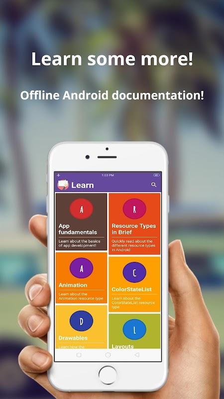Aprendizaje Android nunca fue mucho más fácil! Todo lo que necesita hacer es descargar la aplicación y ponerse en marcha.