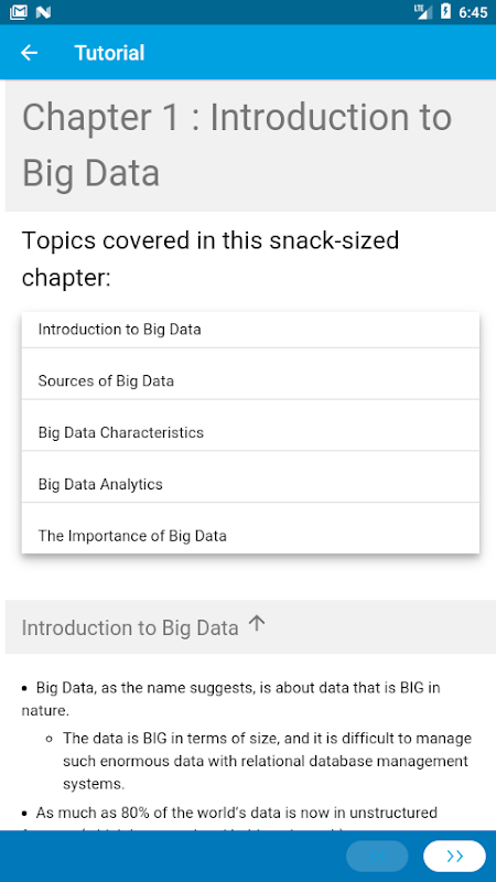 You have limited access to the content provided. For full access to the content, please login and purchase this application. This app provides a quick summary of essential concepts in Big Data and Hadoop by following snack sized chapters: