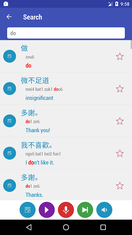 La mejor aplicación gratuita Aprende cantonés para el mundo, contiene más de 9000 palabras y frases comunes con excelente calidad de audio. Sirve para el aprendizaje y los viajeros que visitan el cantonés ... Las lecciones se dividen en categorías y subcategorías de una manera científica, pruebe y sienta. Aporta nuevos métodos de aprendizaje.