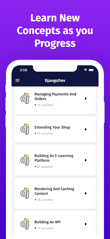 Aprender Django puede ser una actividad complicada y que requiere mucho tiempo. Hay cientos de tutoriales, mucha documentación y muchas explicaciones que son difíciles de digerir. Sin embargo, esta aplicación te permite usar y aprender Django en solo un par de días. Entonces, ¿quieres aprender desarrollo web de Django para desarrollar aplicaciones confiables y seguras que se destaquen entre la multitud, en lugar de pasar horas con el código repetitivo? Entonces el marco de Django es donde debe comenzar. Conocido a menudo como un marco de desarrollo web de 'baterías incluidas', Django viene con todas las funciones básicas necesarias para construir una aplicación independiente. Si quieres aprender todo el proceso de desarrollo de aplicaciones web profesionales con Python y Django, entonces esta aplicación es para ti. En el proceso de creación de cuatro proyectos profesionales de Django, aprenderá sobre las características de Django 3, cómo resolver problemas comunes de desarrollo web, cómo implementar las mejores prácticas y cómo implementar con éxito sus aplicaciones.
