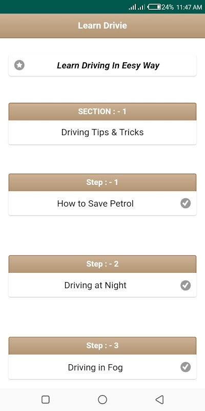 Learn Driving is an educational apps which will help you to know about driving a car. You will know a lot of driving tips and tricks with pictures. It is so easy to learn driving because this app contains step by step driving tutorials. So learn & enjoy.