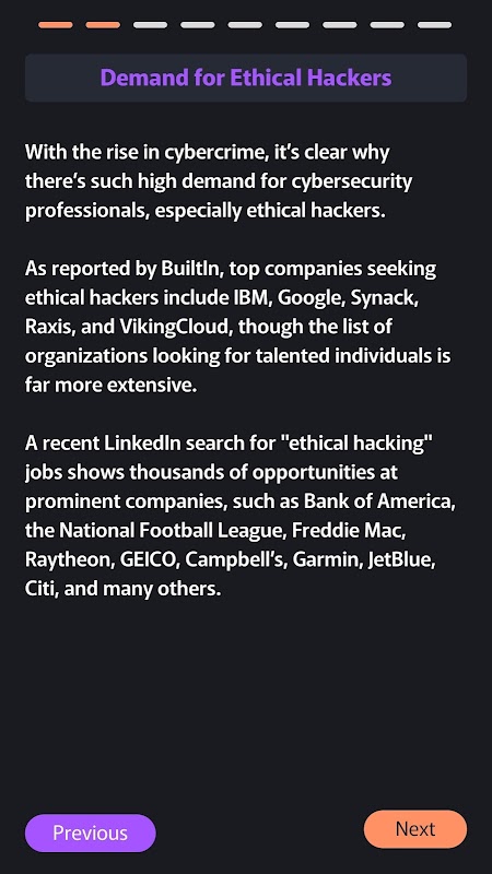 Aprenda habilidades de piratería en línea con la aplicación Learn Ethical Hacking. Esta aplicación de aprendizaje de piratería ética es una red de capacitación en línea de TI y seguridad cibernética que ofrece cursos de piratería en profundidad para hackers novatos, intermedios y avanzados. Con una biblioteca de cursos que abarca temas como piratería ética, pruebas de penetración avanzadas y análisis forense de piratería digital, esta aplicación es el lugar para aprender habilidades de piratería en línea.