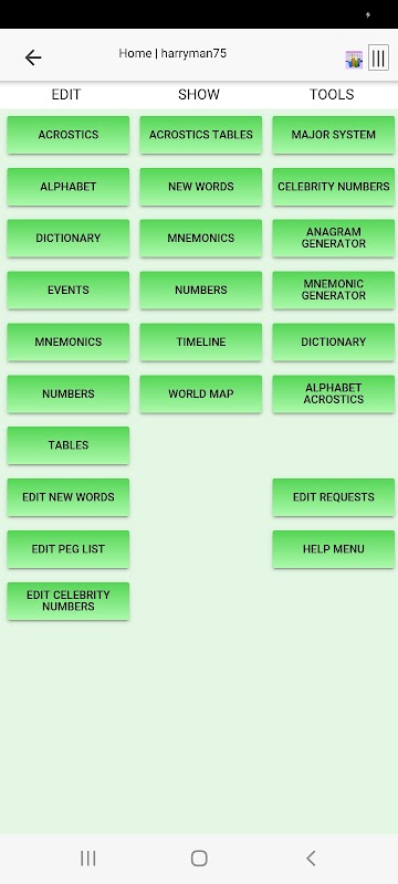 Esta es una aplicación de aprendizaje completa, totalmente sincronizada con la misma funcionalidad que el sitio web, learnfactsquick.com. Puede enseñarle cualquier cosa utilizando técnicas de memoria como el sistema principal y el sistema de número a celebridad para ayudar a recordar números, un generador de sistemas principales y un generador de anagramas y un generador mnemotécnico, un acróstico completo (acrónimos de nombres: EG :LEMUR, un animal de Madagascar, = sistema Ringtail inconfundible de Madagascar de ojos grandes que permite el almacenamiento, la visualización y la edición de una base de datos completa de conocimiento que también incluye mnemónicos y peglists (sistema para recordar tanto el índice como el elemento de la lista basado en el número a mnemotécnico para enumerar la asociación del elemento) . Incluye una herramienta de edición de mnemónicos para editar mnemotécnicos, peglists y anagramas de listas que desea recordar. El mejor aspecto es el nuevo sistema de palabras. Puede diseñarlo a medida para revisar las palabras nuevas que ingresa todos los días, luego haga sus revisiones rápidamente todos los días con unos pocos clics. La idea es que si repasa una palabra nueva 5 o 6 veces con intervalos cada vez más largos, la recordará. Está comprobado que así es como nuestros cerebros almacenan cosas en la memoria permanente.