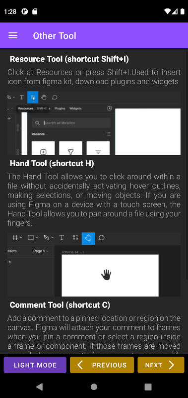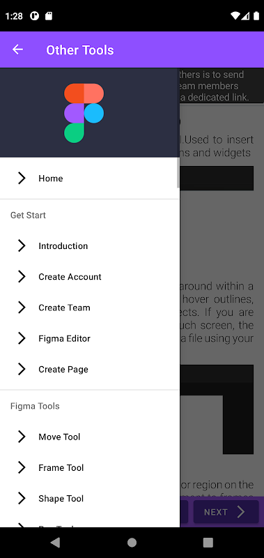 Al usar figma, es fácil desarrollar el prototipo para los clientes y es fácil de editar. Para que los principiantes aprendan Figma a través de esta aplicación de forma gratuita. ¿Qué aprenderá de esta aplicación Learn Figma? Interfaz de Figma, herramientas y creación de prototipos interactivos en los que se puede hacer clic con efectos de transición en Figma. Comprender el uso del diseño y las guías en el diseño de la interfaz de usuario. Aprenderá a usar la animación automática en ilustraciones o en dos pantallas. Colaboración de diseño con otros miembros del equipo utilizando las bibliotecas del equipo. Al estudiar Figma puedes diseñar proyectos web y móviles para tus clientes. Fácilmente puede crear un prototipo de su aplicación y plantilla web para su cliente con todos los efectos de funciones. Cuando la demostración se reproduce en la pantalla, parece que el marco real se está moviendo. Puede copiar los estilos HTML CSS del diseño de figma que creó. Puede agregar miembros del equipo y compartir sus proyectos con el cliente.