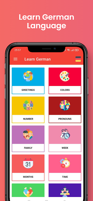 Empiezas a aprender alemán desde el principio y avanzas hacia un vocabulario más complejo.