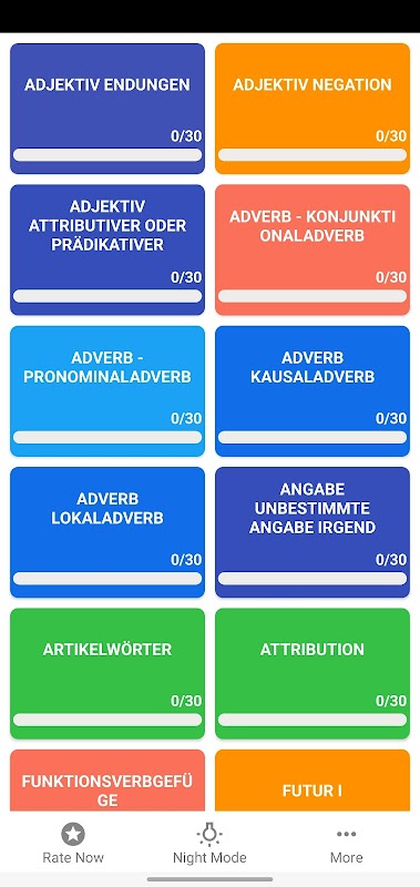 Esta aplicación completa te ayuda a practicar paso a paso desde A1 principiante hasta C1 avanzado, con más de 50.000 ejercicios de gramática (Deutsch Übungen) – todos gratis y disponibles offline.