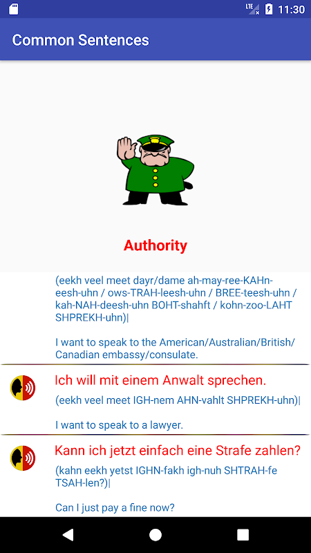 This app is distinct from different learning approaches and traditional apps which may be learn german language offline, learning German language, german grammar app, speak german language, learn speaking German, german grammar in use and speaking German language app because after in-depth analysis and keeping in view of essential metrics for learning any language have been entertained, for example in greetings, help seeking situation, Driving, Transportation, conversation with authority, shopping, direction guidelines; all are demonstrated in this app which local as well as foreigner person may communicate them.