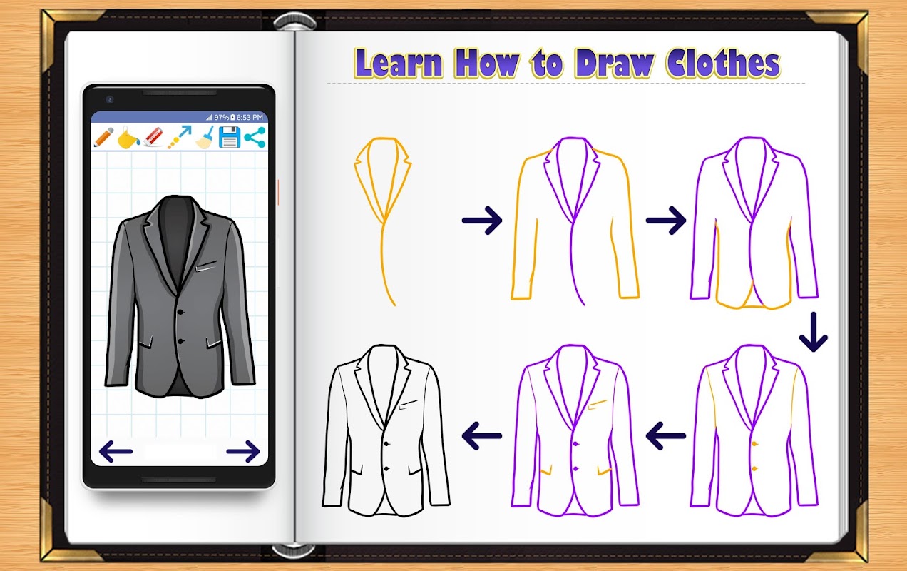 Fashion Clothes drawing and sketches application for kids will show you how to draw cloth and dress design with easy to follow, simple step by step drawing instructions. The following tutorial will guide you through the steps with easy geometric shapes, letters, and numbers.