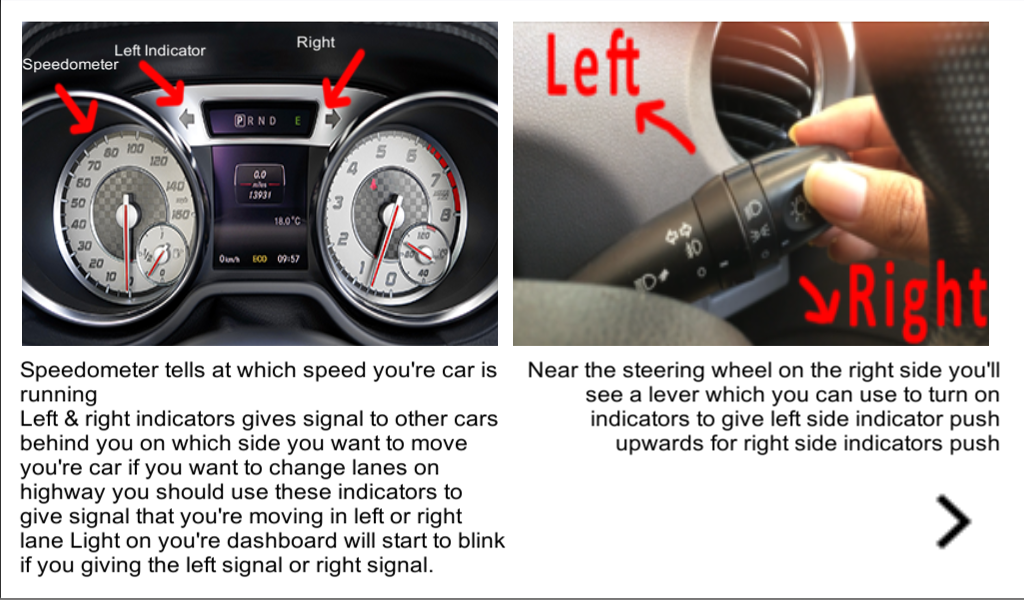 Learn everything you need to know all the aspects of driving we've covered in this app.