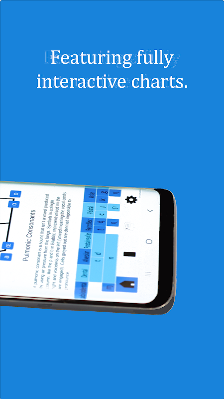 Learn IPA incluye gráficos totalmente interactivos, secciones de revisión y un cuestionario para evaluar sus habilidades.