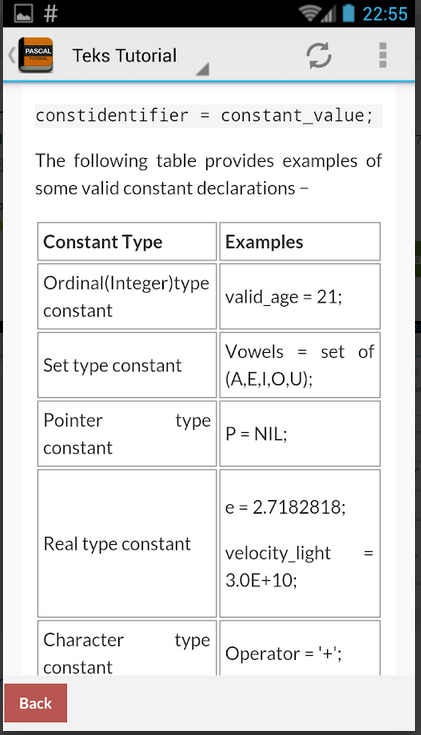 This is the official app of the educational website Pascal-Programming.info. For smartphone enthusiasts, this app is ideal to have instead of using the online website at pascal-programming.info. All content is free and readable offline.
