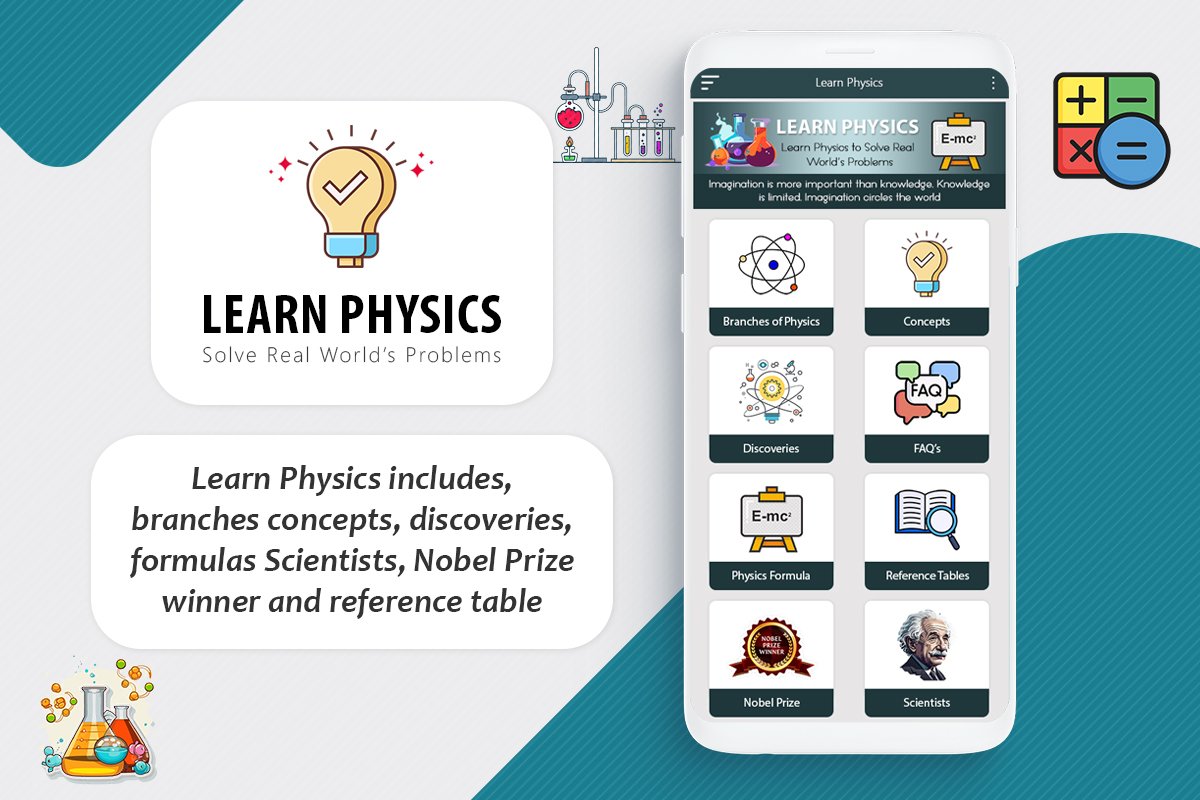 La aplicación Aprender física es una aplicación definitiva diseñada para facilitarle la vida en el proceso de aprender física y prepararse para los exámenes con la aplicación de aprendizaje de Física. Esta aplicación de aprendizaje cubre todos los conceptos básicos, descubrimientos de física, físicos, ganadores del Premio Nobel, preguntas frecuentes sobre física, calculadora de fórmulas de física y tablas de referencia. La aplicación Física tiene todo lo que necesitas para tener éxito en la clase de física.