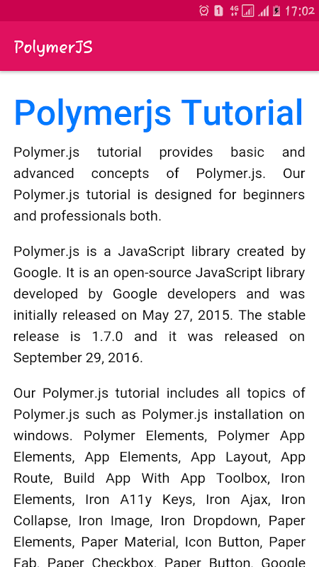 If you like my app Learn PolymerJS - Learn Web Development - learn JS , then share with your friend who is learning this technoly. This is very advance technoloy for webdeveloper. Polymer Js will reduce many work of webdeveloper.