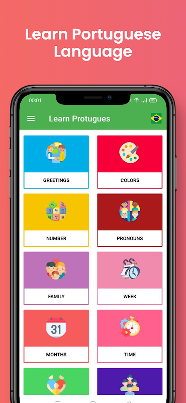 Empiezas a aprender portugués desde el principio y avanzas hacia un vocabulario más complejo.