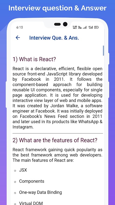Aprenda React sin conexión en cualquier momento y en cualquier lugar con muchos ejemplos y preguntas y respuestas de entrevistas.