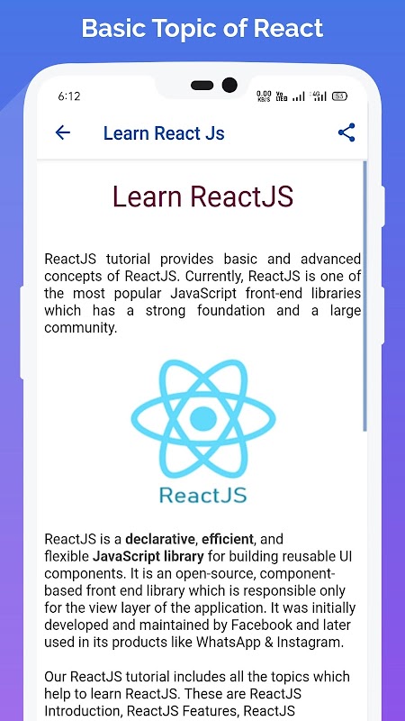 Si está buscando una aplicación para aprender la programación básica de React Js, avance sin ningún conocimiento de programación. Estás en el lugar correcto. Ya sea que sea un programador experimentado o no, esta aplicación está destinada a todos los que deseen aprender a programar React Js.