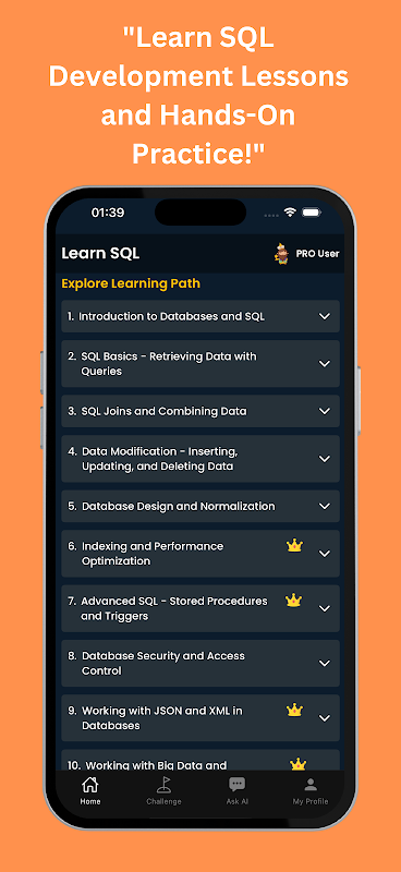 Aprendizaje impulsado por IA: aprenda SQL a su propio ritmo con el apoyo de un tutor de IA inteligente que divide los conceptos en partes breves y comprensibles. Ya sea que esté estudiando declaraciones SELECT o explorando JOIN, subconsultas e indexación avanzadas, la IA explica cada paso, resalta conceptos clave y lo guía con ejemplos interactivos. Dígale adiós a los aburridos libros de texto: este es el mejor aprendizaje práctico y personalizado.