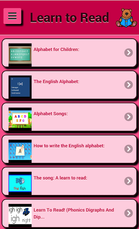 Todos lo tutoriales de Aprender a leer gratis viene en formato de videos y las podras reproducir todas las veces que quieras, hasta que te aprendas cada leccion, asi que no pierdas mas tiempo y descargate gratis esta aplicacion y no te arrepentiras ya que el exito esta asegurado con estas tecnicas de estudio y lectura rapida. Aprovecha la oportunidad que te ofrecen las nuevas tecnologias con esta nueva aplicacion de Aprender a leer, para que te sea mas facil y ameno aprender tus hijos en el inicio de la lectura.