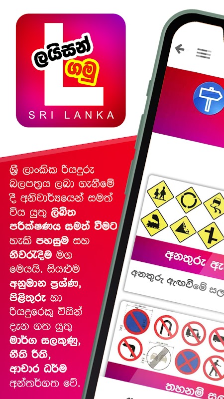 මෙම යෙදුම භාවිතය මගින් ඉතා පහසුවෙන් රියදුරු පුහුණු ප්රශ්න, මාර්ග සලකුණු, නීති රීති සහ අචාරධර්ම පිළිබඳ දැනුම ඔබට ලබා ගත හැක.