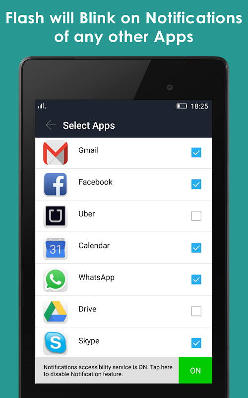 - Seleccione fácilmente otras aplicaciones para habilitar las alertas flash