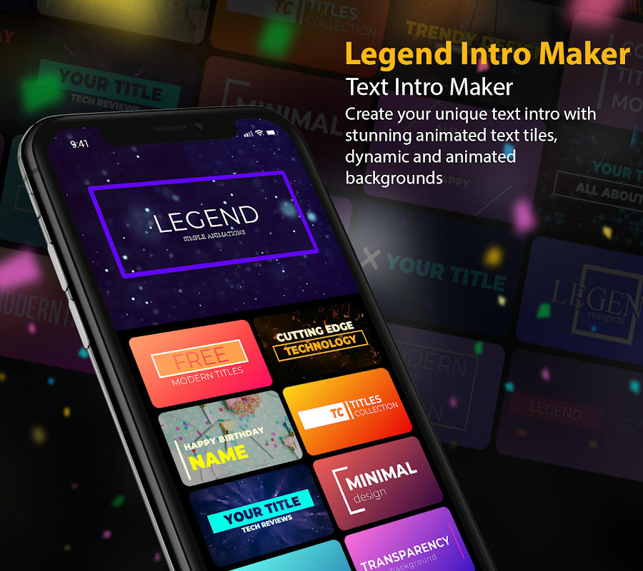 Animated Text Intro Maker & Legend Video maker is a Legend animator application to overlay chosen video with classic text animation. Easy to overlay text on backgrounds with simple text animation with different types of fonts to set on backgrounds.