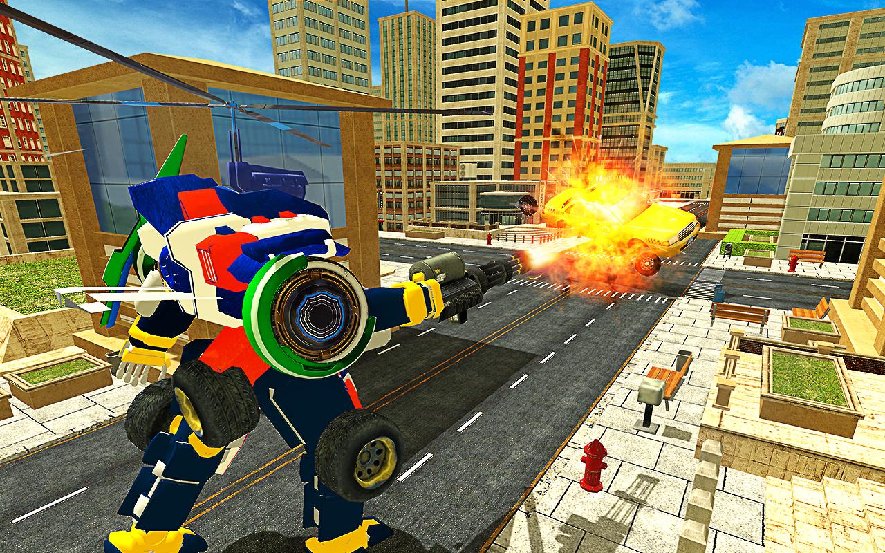 Control a super warrior leopard robot who can transform into many forms including plane, helicopter, car and motorcycle. Robot is equipped with unlimited ammos and 6 modern guns are fully loaded. Enjoy the best robot shooting games experience blended with robot battle and robot fighting games adventure.